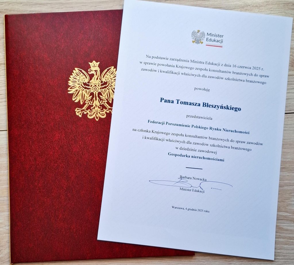 Wśród powołanych członków znaleźli się przedstawiciele Federacji Porozumienie Polskiego Rynku Nieruchomości – Zbigniew Kubiński Prezydent Powszechnego Towarzystwa Ekspertów i Doradców Rynku Nieruchomości i Tomasz Błeszyński Prezes Stowarzyszenia Profesjonalistów Rynku Nieruchomości Polski Centralnej  — eksperci rynku nieruchomości, którzy będą współpracować z zespołem nad tworzeniem i doskonaleniem rozwiązań dotyczących kwalifikacji branżowych oraz zawodów związanych z gospodarką nieruchomościami.